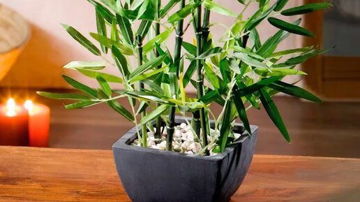Бамбук – интересное вечнозеленое растение декоративного типа, в настоящее время широко используемое не только для офисных интерьеров, но и для домашнего уюта. Это южное растение имеет в основе полый стебель, который сверху заканчивается ланцетовидными листьями. Высота интерьерного бамбука, как правило, не более метра. Самое интересное в нем – это голый стебель, который заворачивается в колечки, а посредством стяжек и жестких форм, можно получить и более интересную форму. К тому же он может произрастать как в цветочном горшке с землей, так и в стеклянной вазе с водой...