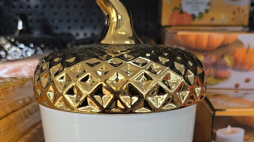 Всем большой привет! Сегодня у меня для вас обзор из Фикс Прайс. В магазин привезли много осенних новинок. Красивая посуда и декор, всё покажу вам в этом обзоре. Шкатулка декоративная в форме жёлудя – оригинальный вариант для хранения мелочей. В ассортименте представлены шкатулки с золотой и серебряной крышками. Размер: 13х13х15,7 см. Объём: 650 мл. Состав: грубая керамика. Производитель Китай. Цена 279 рублей. Вот такая забавная фигурка "Кот Бегемот", сделана из полирезина. Производитель Китай...