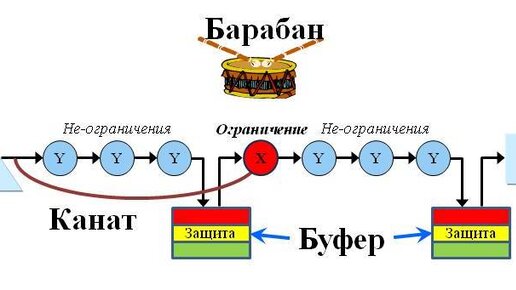 Появление пяти фокусирующих шагов естественным и логичным образом привело к появлению другого фундаментального инструмента Теории ограничений, который известен под названием «Барабан-Буфер-Канат» (Drum-Buffer-Rope, DBR) — ББК...