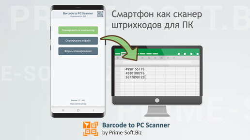 Сканируйте штрихкод и QR телефоном сразу на компьютер или локальный файл Excel (.csv). В этой статье рассмотрим подключение телефона к компьютеру, основные понятия и возможности программы Barcode to PC Scanner. А также, в качестве примера, выполним сканирование штрихкодов смартфоном с отправкой их и дополнительной информации прямо в файл Excel на компьютере. Чтобы подключить смартфон на базе Android или iOS к компьютеру нужно (всего три шага): Шаг 1. Запустить на компьютере программу Barcode to PC Scanner Client...