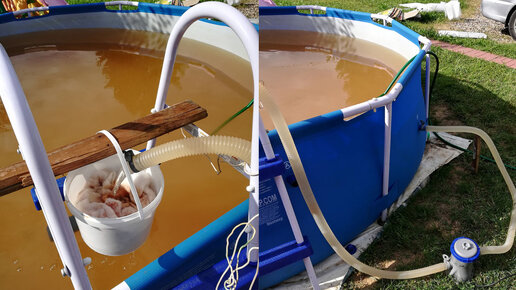 Озаботился очисткой воды в каркасном бассейне на даче. Вода в этом году отвратительная, железа в ней столько, что подумывал уже сдавать и на этом деле озолотиться.