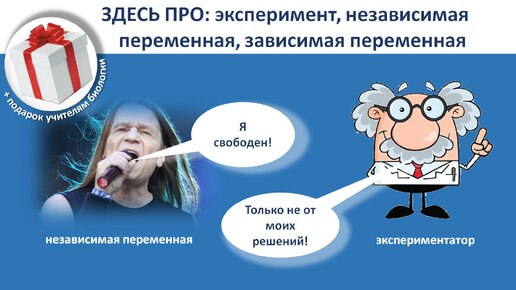 Я ж популяризатор науки. А в научном эксперименте обязательно определяются независимая переменная и зависимая переменная. Стало быть, необходимо разобраться, что эти термины означают, тем более, что и в федеральной рабочей программе для углублённого изучения биологии в 10-11 классах данная тема есть, и для выполнения заданий 22-23 ЕГЭ с этими понятиями нужно быть на ты. В конце публикации учителей биологии снова ожидает небольшой подарок. А начну я с маленького отступления. Как вы думаете? Можно ли быть абсолютно свободным («от зла и от добра…», как там Кипелов уверяет)? Я думаю, что нет...