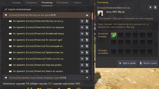 Щ - Рекомендуемые - [Сезон] [Ремесло] Мастер на все руки Выполняется один раз на аккаунт. Ремонтируемое снаряжение. можно восстановить Алхимическим порошком. Который получается если измельчить алхимические камни в окне изготовления Д(L англ) Результат зависит от уровня профессии Изготовление...