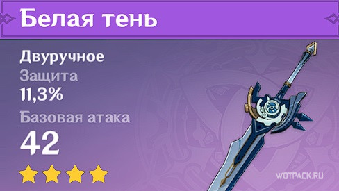 КАК ПОЛУЧИТЬ БЕЛУЮ ТЕНЬ В GENSHIN IMPACT: ХАРАКТЕРИСТИКИ БЕЛОЙ ТЕНИ В GENSHIN IMPACT: Тип: двуручный меч. Редкость: ⭐⭐⭐⭐. Базовая атака: 42-510. Дополнительная характеристика: защита 11,3% — 51,7%. Пассивный эффект: попадание Обычным или Заряженным ударом увеличивает показатели Силы атаки и Защиты на 6% в течение 6 сек...