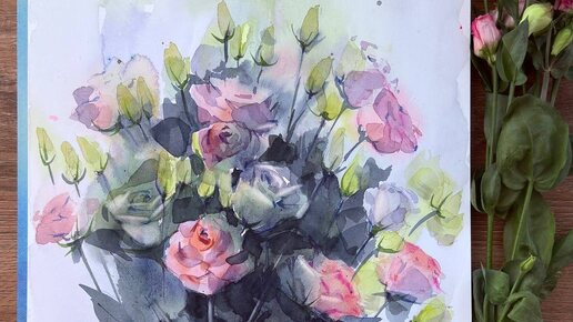Мягкие переходы цвета, прозрачные слои и едва заметные мазки создают ощущение воздушности, будто цветы только что распустились. Нежно-розовые оттенки добавляют работе тепла, а белые розочки придают ей свежесть и свет. В акварели особенно важно сохранить лёгкость — поэтому лепестки выглядят полупрозрачными, а контуры остаются мягкими и слегка размытыми. Такую работу важно не перегрузить деталями: акцент делается на цвете и настроении...