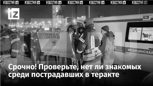 МЧС России опубликовало список госпитализированных после теракта в «Крокус Сити Холле» по данным на 9:00 мск. Отмечается, что список, по данным Минздрава России, состоит из 107 человек. Приводим его полностью. 1. Стебенькова Диана Александровна 2. Кашапова Дарья Викторовна 3. Науменкова Дарья Алексеевна 4. Морякин Николай Николаевич 5. Пустошин Павел Александрович 6. Паращенко Сергей Сергеевич 7. Лугуева Камилла Османовна 8. Тухватуллина Светлана Петровна 9. Свиридова Альбина Николаевна 10. Зайцева Ольга Анатольевна 11...