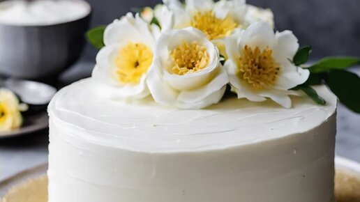 Торт с Белыми Пионами(крем БЗК). /Cake with White Peonies(protein custard).