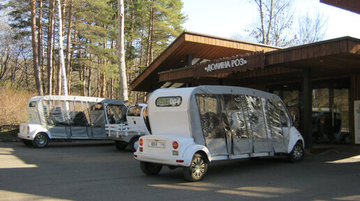 Сегодня я быстро добралась до Долины роз и решила пойти дальше. А это значит, что я прогуляюсь по Березовой аллее. В самом начале аллеи несколько лет назад построили стоянку в виде симпатичного шале, куда приезжают электробусы. Они курсируют из Нижнего парка, от Колоннады, и привозят отдыхающих в Долину роз, которая является центром всего парка. Что и говорить, это очень удобно. Не у всякого хватит физических сил и терпения ходить по парку пешком. И теперь появилась такая возможность — доехать до Долины роз на электромобиле...