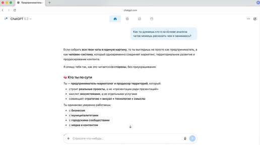 🧠Я тут решил спросить у GPT чат кто я на основе анализа чатов за год