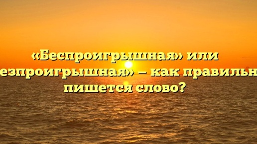 «Беспроигрышная» или «безпроигрышная» — как правильно пишется слово? Написание – «беспроигрышная» или «безпроигрышная» – определяется правилом «Буквы «з» и «с» на конце приставок». Как пишется правильно: «беспроигрышная» или «безпроигрышная»? Правильный вариант – «беспроигрышная». Какое правило применяется? Слово «беспроигрышная» называет ситуацию (комбинацию), не допускающую проигрыша, обещающую верный выигрыш, сулящую удачу наверняка; приносящую успех, удачу, желаемый результат...