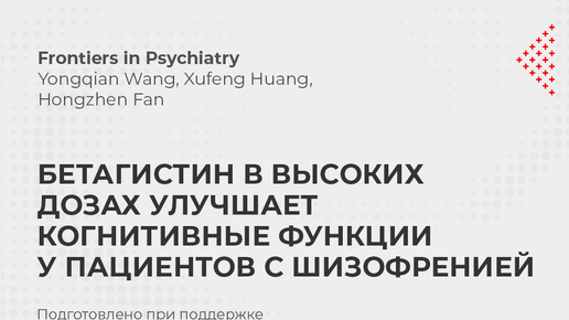 В настоящее время не существует эффективного лечения когнитивных нарушений, связанных с шизофренией. Недавние исследования показали, что повышенный уровень гистамина в головном мозге может помочь улучшить когнитивные симптомы при шизофрении. Бетагистин является агонистом H1-рецепторов и антагонистом H3-рецепторов. В рандомизированном двойном слепом плацебо-контролируемом испытании приняли участие 89 пациентов с шизофренией, которым случайным образом давали бетагистин (72 мг/сут) или плацебо в течение 12 недель...