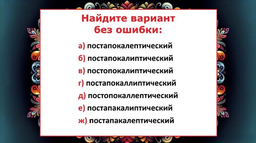 Ваша задача — выбрать правильный вариант написания слова. Только по-настоящему грамотные люди не запутаются...
