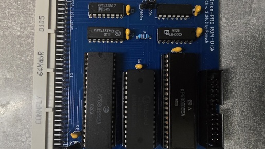 Предыдущая часть. До этого момента мой Орион-ПРО не содержал никаких программ, кроме "Monitor" и "Test", которые можно было вызвать из стартового меню. Пришло время расширить функционал. В этой статье совсем не много расскажу про сборку платы расширения "ROM-Disk", ссылка на проект. Вот такой набор для сборки платы "ROM-Disk": Сборка на первый взгляд совсем не сложная, деталей совсем не много. За вечер спаял, про сам процесс пайки рассказывать и нечего: В качестве носителя информации используется микросхема ПЗУ W27C020...