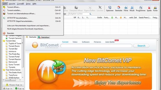 Современные технологии позволяют скачивать данные через протоколы P2P. Пользователь может загружать данные с сайтов, используя специальную программу-клиент. При необходимости можно докачать файлы в любое время. На торрент-трекерах используется технология P2P. Пользователь скачивает данные с сайта, и становиться на раздачу фильма или музыкального сборника. Данный способ очень практичен, ведь можно делиться данными по всему интернету. BitComet — это бесплатная программа для скачивания информации из ресурсов интернета...