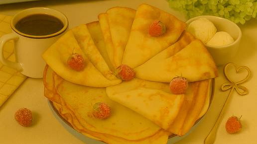 * * * Тонкие румяные блины готовятся всего за полчаса и идеально подходят для завтрака или полдника. Дайте тесту постоять 20 минут — тогда блины не будут рваться и хорошо подрумянятся. Подавайте их с вареньем, кремом или сгущёнкой. Тесто можно приготовить заранее и оставить в холодильнике до утра. Сложность: 5 ленивцев из 10 🦥 Ингредиенты: Молоко 500 мл (любой жирности) Яйца 2 штуки Сахар 3 ст. ложки Соль 1 щепотка Масло растительное 2 ст. ложки Мука пшеничная 120 грамм Количество порций 4 Пищевая ценность на 100г...