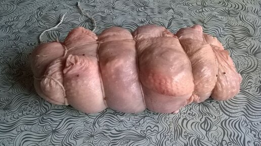 Наверное, это правильнее называть колбасой, хотя мы называем ветчиной. Да, знаю, ветчина — это не про курицу. Но это блюдо можно готовить из любого мяса, в том числе — разных мяс. Главное в нем — пряности, желатин и... секрет, который вы узнаете, лишь прочитав инструкцию целиком :-) Ингредиенты: Приготовление: С курицы аккуратно снять кожу — в нее будем заворачивать начинку. В этом деле требуется хороший навык, если с первого раза не получится, и в шкуре останутся дырочки, не расстраивайтесь — их можно будет зашить, подвернуть или просто наложить вторым слоем при обвязывании колбасы...