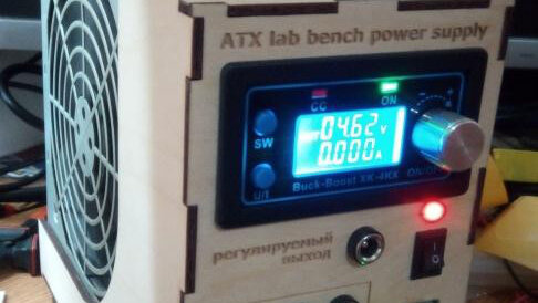Настольный блок питания на несколько напряжений для начинающего радиолюбителя на базе компьютерного блока питания формата ATX. Всё кроме корпуса и самого блока ATX заказывалось с Aliexpress. Статья будет столь же короткая насколько и проста схема ибо тут нет ничего такого что можно долго описывать (да и нужно ли?). За основу взят первый попавшийся блок питания вот с такими параметрами : В качестве модуля регулируемого выхода используется "народный" ZK-4KX с Алиэкспресс : Корпус вырезан лазером из фанеры 3мм (нашёл резчика по объявлению на Авито)...