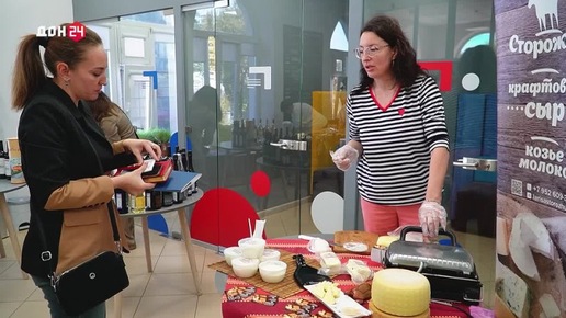 Ростовская область, 28 октября 2025. Телеканал «ДОН 24». Лариса Сторожук делает сыр уже больше 5 лет. Сначала было небольшое хозяйство. А теперь целое семейное производство, здесь делают сыры из козьего и коровьего молока, с белой плесенью и другие сорта. Во время торгово-закупочной сессии можно найти новых покупателей и партнеров. Лариса Сторожук, сыродел: