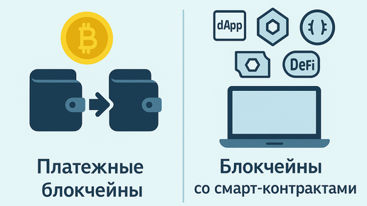 Сегодня мы познакомимся с основными блокчейнами и нюансами их работы! К концу гайда вы разберетесь: Прежде чем нырять в детали, давайте разберемся, какие вообще бывают блокчейны. Тут всё как с автомобилями — есть легковые, грузовые, спортивные, и у каждого свое предназначение: Каждый блокчейн создан под конкретную задачу и требует индивидуального подхода. Сначала разберемся в общих чертах, а потом погрузимся в каждую категорию по отдельности: 1. Платежные блокчейны (только для переводов) Работают как обычный банковский перевод — можно только отправлять деньги с одного счета на другой...