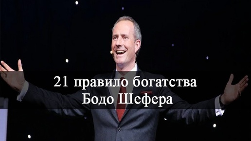 Бодо Шефер - известный немецкий писатель, финансовый консультант и бизнесмен. Он является автором множества книг и семинаров по саморазвитию, личностному росту и управлению личными финансами. В данной статье были приведены 21 правило богатства от Бодо Шефера из его книги "Путь к финансовой свободе". 1. Откладывайте по 25% от регулярного дохода и 50% от сверхдохода на отдельный счет и впоследствии инвестируйте эти деньги. Банки платят копейки и максимум спасают деньги только от инфляции. 2. Экономьте - только экономя и вкладывая деньги, можно стать миллионером за несколько лет...