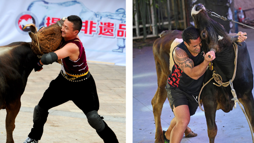 Китайская борьба с быком голыми руками