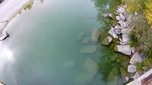 Рыбки в затоне. Они гоняют по воде кусочки хлеба брошенные туристами. Вид с моста на это "скопление" мелких рыб