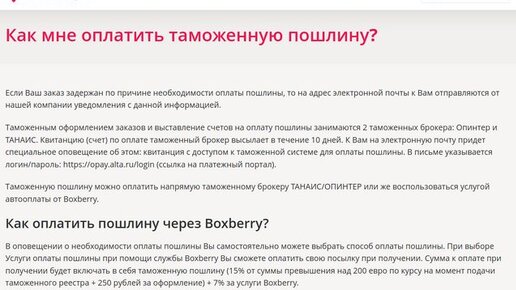 Как оплатить таможенную пошлину и таможенный сбор при доставке посылки из-за рубежа при помощи курьерской службы Boxberry