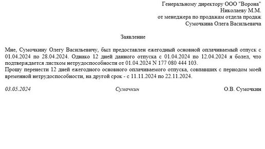 Как оформить перенос отпуска в связи с больничным листом
