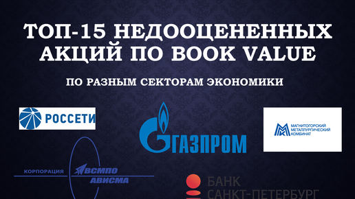 По разным секторам экономики Сегодня поделюсь с вами подборкой акций, которые недооценены по показателю Book Value. Это показатель балансовой стоимости. На его основе рассчитывается мультипликатор P/BV (цена акции / балансовая стоимость акции). Если копания торгуется с P/BV = 1, это значит, что она оценена ровно по стоимости всех активов, которые имеются у компании на балансе (П3 раздела баланса – собственный капитал). Если P/BV ниже 1, можно говорить о недооценке. Например, значение показателя 0,5 говорит о том, что компания стоит на бирже в 2 раза дешевле, чем стоимость капитала...