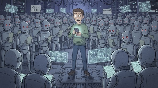 Идея о том, что интернет «умер» и его захватили боты, зародилась не вчера. Она долго бродила по анонимным форумам, пока в 2021 году не оформилась в полноценную теорию. Ее суть проста и состоит из двух частей. Первая часть — это то, что мы видим своими глазами. Примерно с 2016-2017 года количество контента, созданного машинами, стало расти лавинообразно. А живое человеческое общение начало вытесняться общением с ботами. И это не предположение, а факт, подтвержденный статистикой. Вторая часть — это уже конспирология...