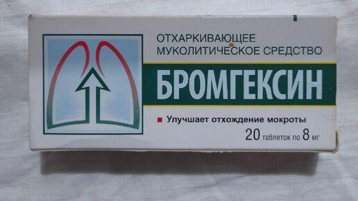 Здравствуй дорогой читатель, тут я хочу рассказать о хороших таблетках, который помогают от влажного кашля. В упаковке содержится 20 таблеток, по 8 мг. Круглые плоскоцилиндрические таблетки белого цвета с фаской. Состав: Бромгексин гидрохлорид-8 мг. Крахмал картофельный - 80 мг. Лактоза - 80мг. Сахароза - 30 мг. Кальция стеарат - 2 мг. Очень эффективное вещество, если мокрота не отходит от лёгких. Примерно через 3 дня, мне стало уже легче дышать, а уже через неделю, я забыл что такое кашель...