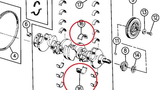 Однако, здравствуйте. Вниманию почтенной публики предлагается способ решения проблемы осевого перемещения коленвала, примененный на шестицилиндровом двигателе AMC 242, он же ERH, установленном на моем Jeep Wrangler YJ 1995 года выпуска. Американцы взяли и сделали примерно по центру колена два массивных вкладыша с отбортовками. Колено вкладывается во вкладыш и надежно фиксируется на нем щеками, а вкладыш надежно фиксируется в блоке и бугеле отбортовками. Напомню, что на ЗМЗ подобные проблемы решаются иным способом...