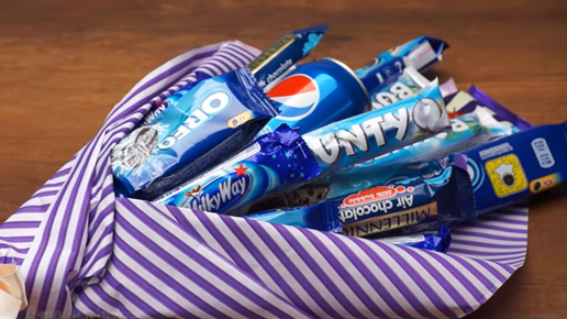 Всем привет, вы на канале готовим дома. Сегодня я оасскажу, как сделать красивый букет из разных сладостей. Сладкий букет приятно удивит и обрадует ребёнка или подростка. Букет делается совсем несложно. Его запросто сможет сделать каждый, своими руками. Я купила разные батончики, печенье, шоколадку и банку пепси-колы. Так как этот букет будет подарком для мальчика, то основным цветом я выбрала синий. Теперь все это нужно подготовить для сборки в букет к батончиками узким скотчем. Длинные бамбуковые...
