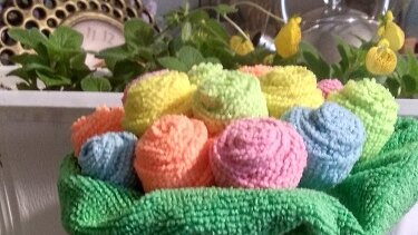 Всем привет! Идете в гости и не знаете что подарить хозяйке? В этой статье я расскажу как сделать оригинальный букет из кухонных полотенец, которые порадуют хозяйку и пригодятся на любой кухне. Вот такой яркий букетик получился у меня: Что нам понадобиться для создания такого букета? Берем полотенце и раскладываем его как на картинке. Начинаем скручивать по горизонтали. Иногда делаем небольшие складочки для имитации лепестков. Скручиваем до конца полотенца, у нас получится вот такой бутон. Далее закрепляем бутон узким скотчем либо резинкой для денег, так чтобы он не разворачивался...
