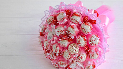 Нежный букетик из Раффаэлло с органзой: мастер-класс