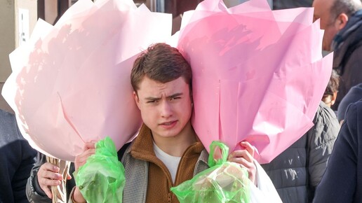 8 марта, обезьянки и букеты напрокат.