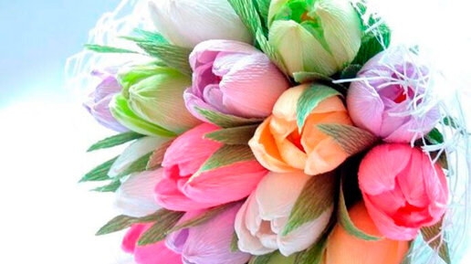 Если хотите удивить близкого вам человека оригинальным букетом, который никогда не завянет, то яркий букет тюльпанов из гофрированной бумаги с конфетами внутри, станет отличной идеей для этого. Изготовление букета не займет много времени и больших затрат...