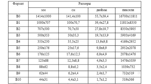 Размеры форматов А0, А1, А2, А3, А4, А5, А6 / B0, B1, B2, B3, B4, B5, B6 в сантиметрах