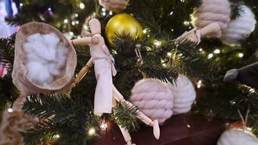 В декабре 2025 лидируют натуральные материалы, крупные акценты и немного «странных» предметов, которые делают декор живым и запоминающимся. Текстильные игрушки из льна, хлопка, шерсти с вышивкой, кружевом и стежкой выглядят как семейные талисманы, а не фабричный декор. В моде мягкие сердечки, звездочки, «пряничные» человечки, звери и мини-подушки на петельках — их легко шить на мастер-классах и использовать в экодекоре. Вместо сотни мелких игрушек всё чаще используют один «облако-массив» из крупных шаров: от матовых до зеркальных, собранных плотной группой на одной части ёлки или стены...