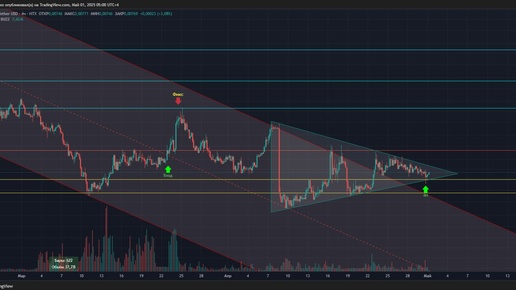 #BUZZ 🔼🔼🔼 ⚠️Свежий претендент на пару тройку иксов. Всё, что сейчас "модно"), есть: и падение от HI на 97%, и сбор сливок под Low уже после падения, и выход из нисходящего канала. Осталось выпрыгнуть из треугольника консолидации, можете дождаться этого события и действовать!! P...