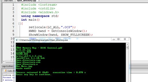 Предлагаю вам попробовать написать программу для чтения директории (папки) своими руками. Код небольшой, думаю, что набрать его вам не составит особого труда, зато вы попробуете себя в роли программиста С++ и получите представление об этом языке программирования. Как пользоваться компилятором вы можете посмотреть в другой моей статье. Для удобства код я разбил на части, они выложены в виде скриншотов (фото), далее идет объяснение каждой строки. Итак, поехали: Подключаем необходимые библиотеки,...