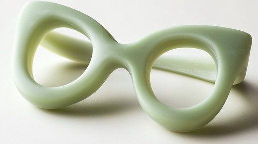 Создано на основе запроса: a soft, rounded pair of eyeglasses made of pastel green wax-like material, candle-inspired design with smooth curves and slightly translucent texture, playful and chunky form, minimal and toy-like aesthetic, matte surface with subtle light reflection, isolated on a soft off-white background, cozy and sculptural, inspired by handmade wax furniture --- Автоперевод: Мягкая, округлая пара очков, изготовленных из пастельного...