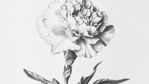 Создано на основе запроса: pencil drawing, carnation flower with stem and leaves