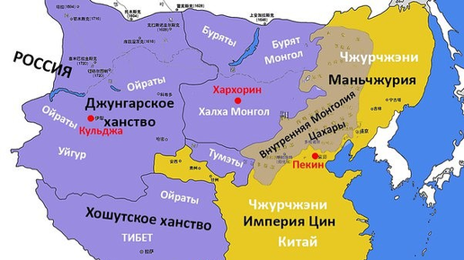 Первое упоминание о джунгарах (или как они сами себя называли — ойратах) относится к началу 13-го века. По монгольским хроникам, вождь этого народа подчинился Чингисхану в 1208 году, и поскольку сам сдался на милость победителя, то он и его семья влились в ряды монгольской знати. В умении держать нос по ветру правители джунгаров выделялись. Они успешно пережили все междоусобные столкновения Чингизидов и в 1399 году создали первое самостоятельно государство — Дербен-Ойрат (или Ойратское ханство). Долгое время всё шло хорошо...