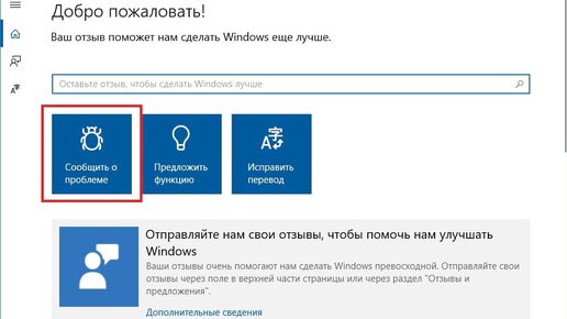 Как сообщить о проблеме или отправить отзыв о Windows 10