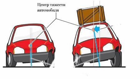 Устойчивость машины зависит от положения центра тяжести — условной точки, в которой сосредоточен вес автомобиля. Чем ниже центр тяжести, тем безопаснее езда: оси автомобиля лучше сбалансированы, меньше риск перевернуться. Автовладельцы могут менять положение центра тяжести. Скажем, вы перевозите вещи в новую квартиру. Часть из них кладете в багажник на крышу. Из-за этого центр тяжести смещается вверх — устойчивость автомобиля снижается. Теперь представьте, что с загруженным багажником вы входите в поворот...