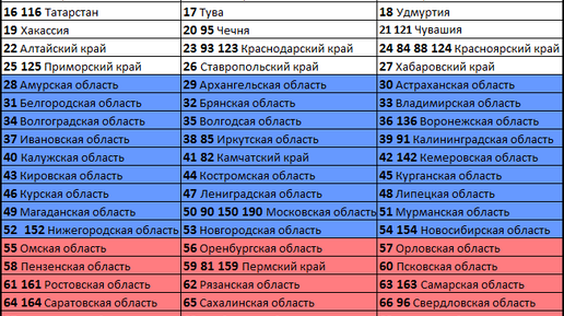 Автомобильные коды регионов Российской Федерации