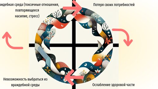 Что не используется, то со временем приходит в негодность. Так и с нами, когда потребности человека игнорируются, или когда их невозможно удовлетворить, они как будто теряются, полностью исчезают. На их месте появляется "мне ничего не надо". И это не то "я ничего не хочу в подарок, у меня все есть", а настоящее "не надо", которое идет изнутри и которому по-настоящему верится. И тут вырисовывается порочный круг, поскольку понимание своих потребностей - это значимая составляющая здоровой части, которая в свою очередь дает нам силы, помогает выбирать для себя лучшее, сверяется с реальностью...