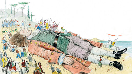 Как известно, по дороге из страны гуингмов Гулливер потерпел кораблекрушение и оказался в Википедии, но часть его путешествия по понятным причинам не попала (да и не могла попасть) в хорошо известный сборник Джонатана Свифта. Ниже приводится небольшой фрагмент той истории. Почти наверняка ранее он нигде не публиковался. *** Очнувшись, Гуливер обнаружил себя лежащим на берегу моря среди обломков дерева, порванного бурей такелажа и беспорядочно разбросанной утвари. Солнце припекало, что явно свидетельствовало о том, что уже далеко не утро...