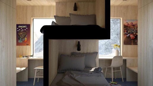 Часто возникает необходимость разделить комнату на зоны отдыха и гостевую часть или разделить детскую комнату на две между для каждого ребенка. Идей сейчас можно придумать много, но здесь представлены, действительно оригинальные и необычные. Вот один из вариантов деления детской, хотя эта идея может быть применена и для деления спальни и гостинной. Чем же он так оригинален и необычен, да хотя бы тем, что комната разделена поперек окна. И кстати это не стандартные перегородки, а необычная двухсторонняя кровать...